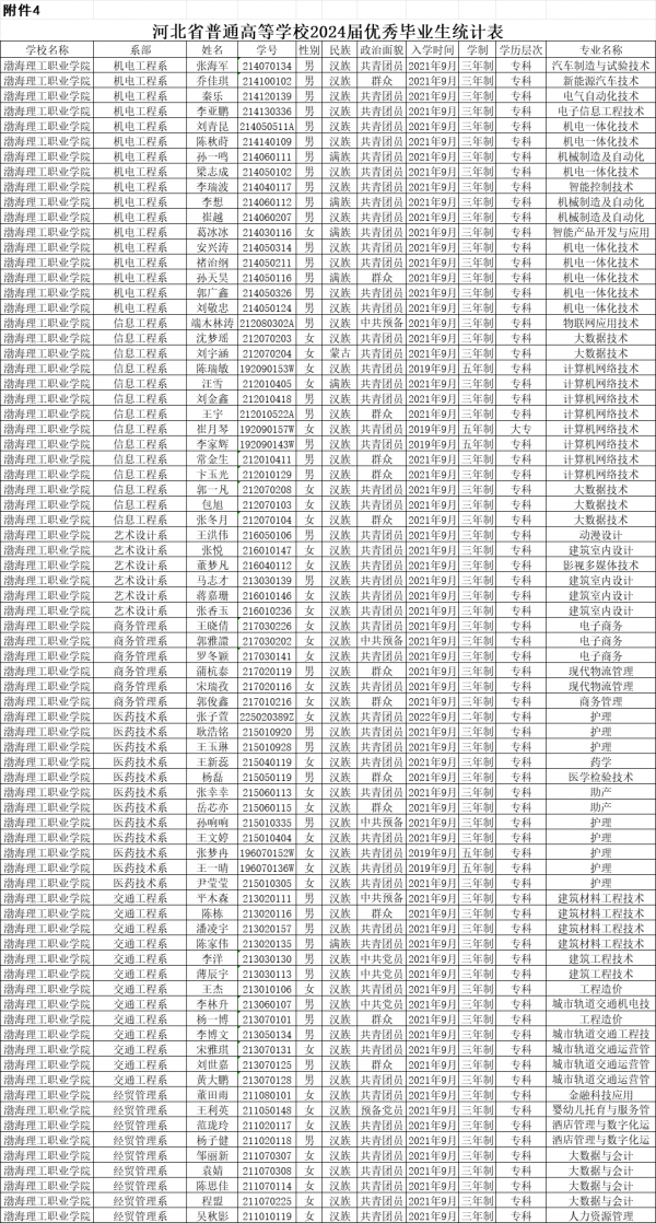 按照《河北省教育厅关于评选河北省普通高等学校2024届优秀毕业生的通知》(冀教学函〔2024〕7号)要求,经班级评选推荐,系部审核,学院批准,拟确定汽车制造与试验技术专业张海军同学等77人为2024届省级优秀毕业生推荐对象,具体名单如下。
