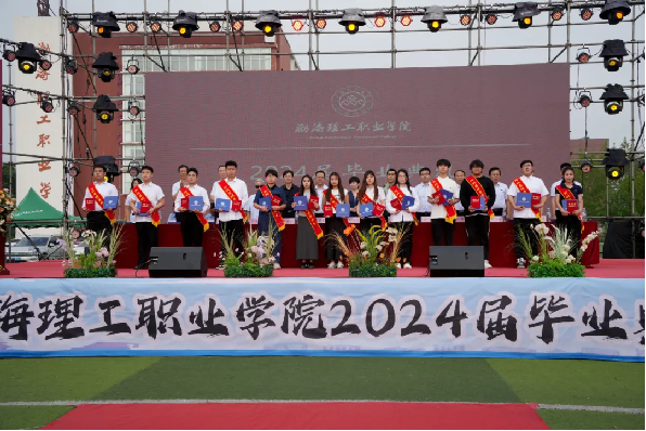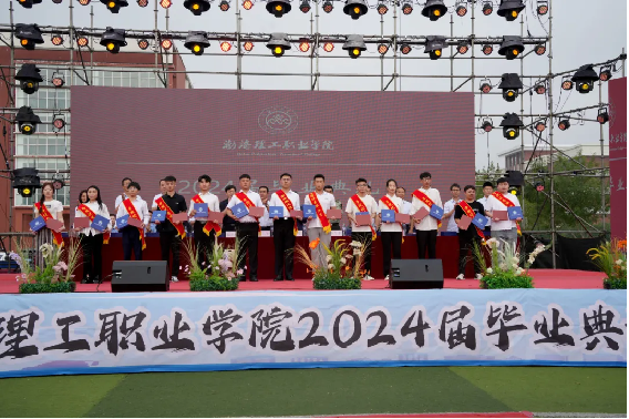 beat365平台官方网站党委书记卢振启教授宣读《beat365平台官方网站关于表彰2024届优秀毕业生的决定》,由市领导、院领导为省级、院级优秀毕业生代表颁发获奖证书及毕业生伴手礼。
