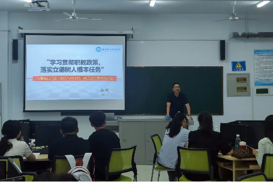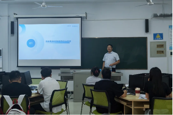 机电系李文涛主任从专业概况、专业详情汇报、专业特色与创新、存在问题及整治措施和新背景下逐步增加的汇报内容五个方面为大家讲解了如何说专业。医药系胡进中主任从高职教育课堂教学设计原则、课堂教学设计的具体内容及要求、职业能力实训项目设计、职业能力实训素材的选择与运用、项目教学过程控制几个方面为大家讲解了高职课堂教学设计及实训教学设计思路。商务系和刚主任从高等职业教育概念及发展沿革、职业教育重大政策演变的国家逻辑、落实立德树人、德技并修育人的目标要求及实实在在地把职业教育搞好”的发展方向几个角度为大家解读了教育强国背景下的现代职业教育高质量发展政策。三位系部主任平易近人,以深入浅出的方式跟大家们进行分享,也使新教师们获益匪浅。