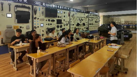 在电气和汽车实训室中,机电工程系的刘丹和赵爽两位老师分别为大家呈现了电气控制及气门组的拆装与检修两门实训示范课,在课堂上,两位老师着重强调了如何规范操作、通过实训成绩有效地进行课堂管理以及相关的安全注意事项。通过实训,新教师们更加直观地体会到理论与实践的紧密结合。