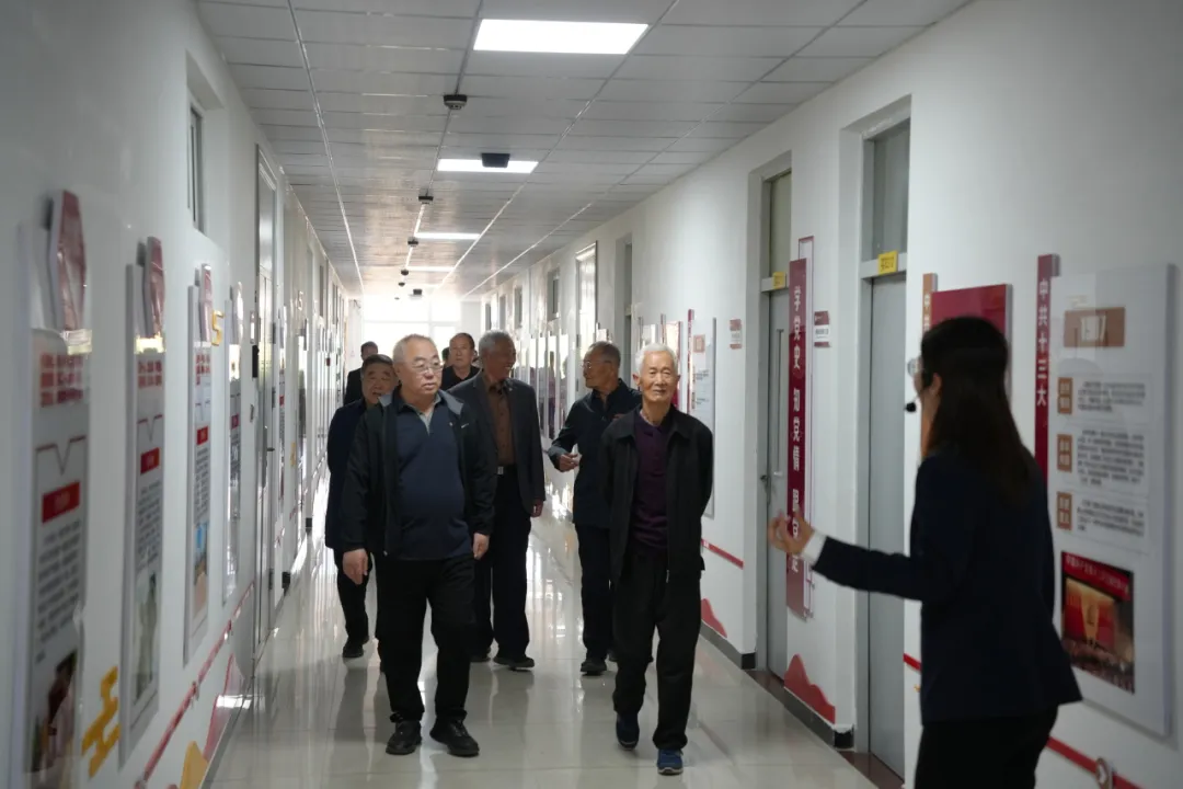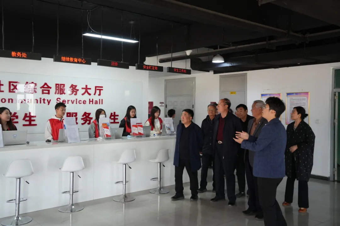 最后,在学院党建文化长廊前,调研组深入了解“党建引领+专业建设”双融双促的实践成果。心理咨询室、一站式学生服务社区让老干部们感受到学院“以生为本”的温情。