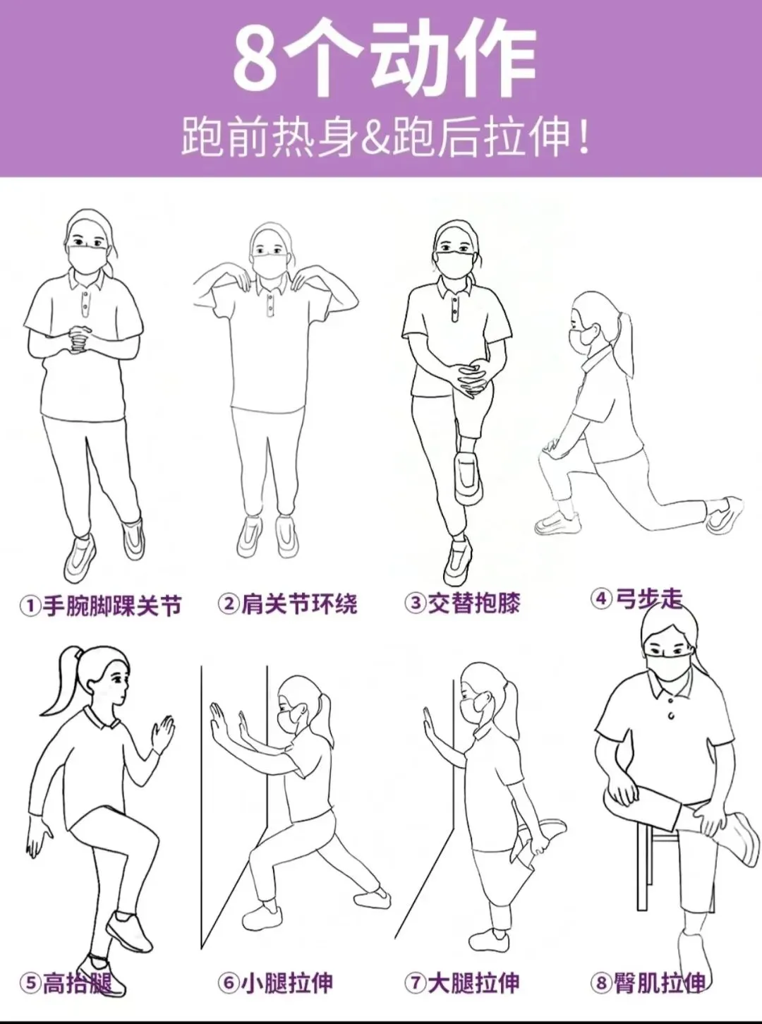 热身运动可以包括慢跑、拉伸和关节活动等。比赛当天气温低时,准备活动的时间应适当延长。