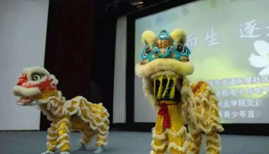 本次活动旨在搭建一座沟通的桥梁,打破特殊青少年与社会间的壁垒。活动以一场气势磅礴的舞狮表演拉开帷幕,金红交织的狮头在铿锵鼓点中腾挪翻转,时而俯身戏珠,时而昂首啸天,灵动的身姿与欢快的节奏点燃全场热情,为特殊青少年带来震撼的视听盛宴,让他们在传统文化的魅力中感受非遗艺术的生命力。
