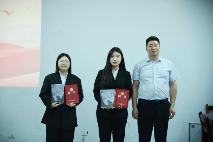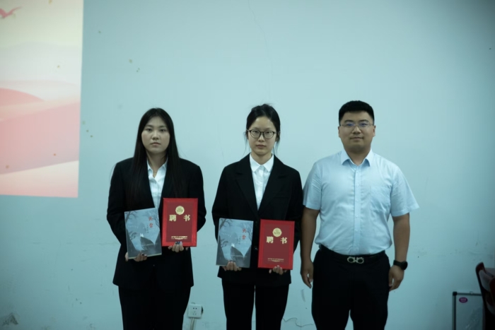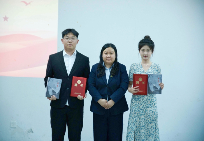 在隆重的聘书颁发环节中,主席董营为秘书长融佳,杨依佳颁发聘书;副主席胡进中为外联策划部长刘一彤、宣传部部长李乃瑶颁发聘书;副主席杨明为文艺部部长王奕炜、办公室部部长周国豪颁发聘书;副主席刘旭为创作部部长于津卉、编辑部部长张宇鑫颁发聘书。这一庄严仪式标志着渤海理工作协正式投入运作。
