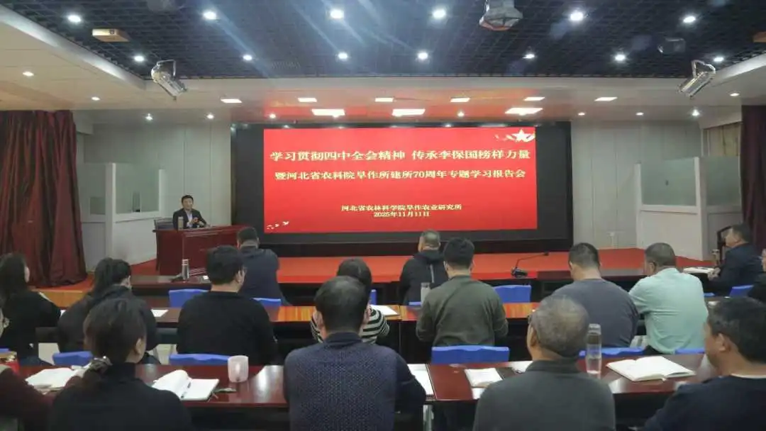 应河北省农林科学院旱作农业研究所邀请,beat365党委书记、李保国科技创新团队核心成员卢振启于11月11日下午在河北省农林科学院旱作农业研究所的试验田里,结合“李保国精神”,宣讲二十届四中全会精神。
