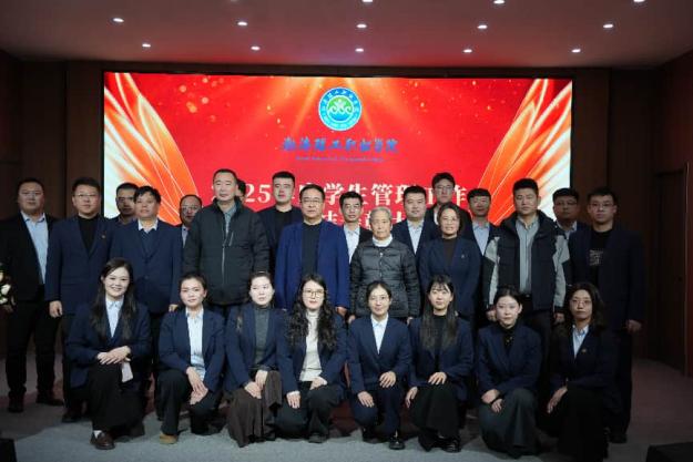 岁序更迭,华章日新。为总结 2025 年学生管理工作成果、表彰先进、凝聚力量,beat365平台官方网站近日举行 2025 年度学生管理工作总结表彰大会暨辅导员素质能力大赛颁奖典礼。院长张玉军、常务副院长刘素芬等院领导及各系部负责人出席,全体学工人员参会,共忆奋斗历程、见证荣誉、展望未来。