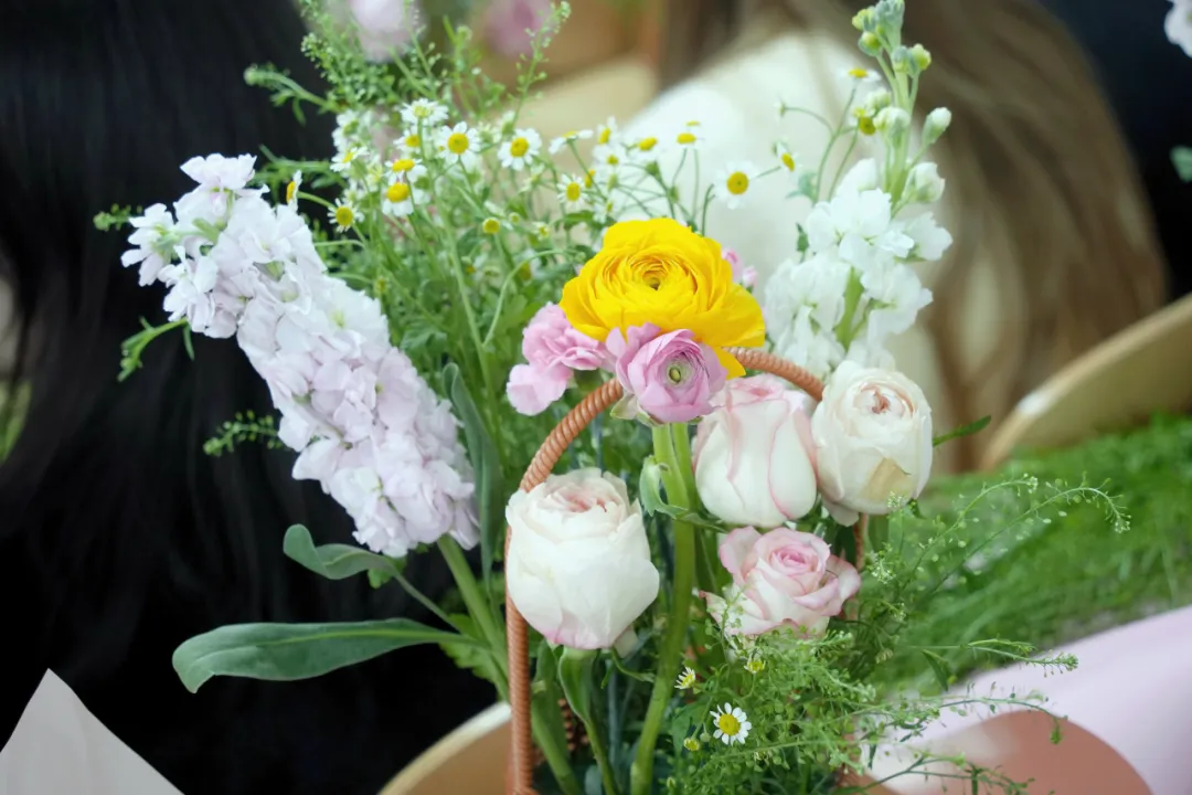 在花艺师一对一指导下,一篮篮独具匠心的花艺作品陆续诞生,花香与欢笑交织,大家卸下疲惫,感受艺术之美。