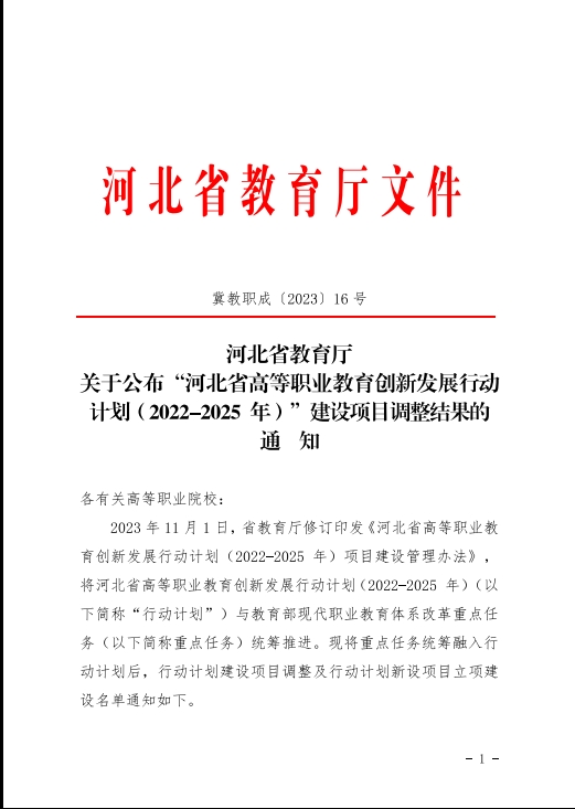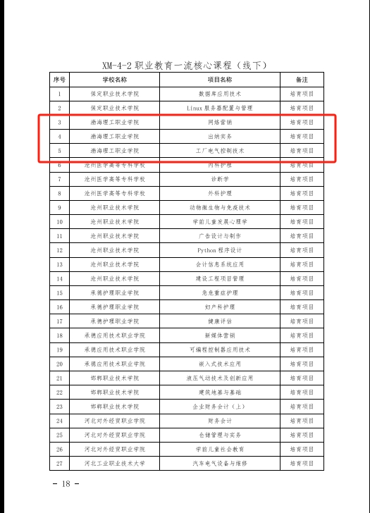 日前,在河北省教育厅公布的《河北省高等职业教育创新发展行动计划(2022—2025)建设项目调整结果》(冀教职成[2023]16号)的通知中,beat365平台官方网站《网络营销》、《出纳实务》、《工厂电气控制技术》3门课程被列为职业教育一流核心课程(线下)培育项目。