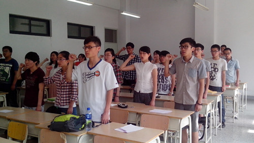 新葡萄8883官网AMG本科生党支部副书记杨勇宣读了新党员名单。随后10级法学班的魏晓慧带领新党员庄严宣誓。面对鲜红的党旗,党员高举右手,庄严宣誓,用誓词表达了对党的无限忠诚和崇高敬意,表达了积极投身党的事业、执着奉献的决心。