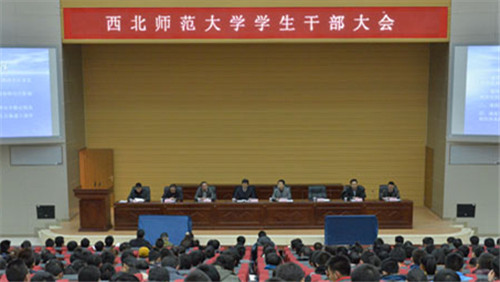 近日,学校在新校区毅然报告厅召开了全校学生干部大会。党委副书记、副校长朱卫国和学生工作部(处)、武装保卫处、西北少数民族师资培训中心办公室、团委、兰天学生公寓管理中心等部门负责人出席会议。新葡萄团委书记、辅导员,学生会主要干部、各班班长共计11人参加了此次会议。