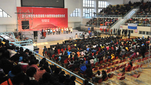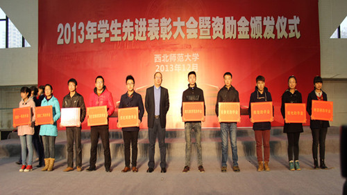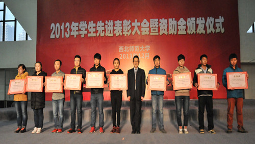 2013年12月27日,学校在体育馆隆重举行2013年学生先进表彰大会暨资助金颁发仪式。校党委书记刘基、校长刘仲奎、党委副书记于树青、副校长万明刚、刘玉泉、丁虎生出席会议。新葡萄党总支书记张喜爱、副书记李仁、团委书记赵小培及获奖学生代表48人参加了此次大会。大会由于树青副书记主持。