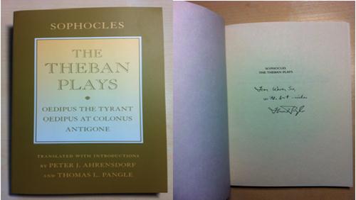 皮特·阿兰斯多夫(Peter J. Ahrensdorf)教授、托马斯·潘高(Thomas L. Pangle)教授共同完成的最新研究性英译本《索福克勒斯的底比斯系列剧》(Sophocles’ The Theban Plays:Oedipus The Tyrant, Oedipus At Colonus, Antigone),作为潘高教授主编的阿果拉丛书(Agora editions)之一,日前由美国康奈尔大学出版社(Cornell University Press)付梓刊行。新书问世之际,英译者特向新葡萄西方法政传统研究中心惠赠新作。