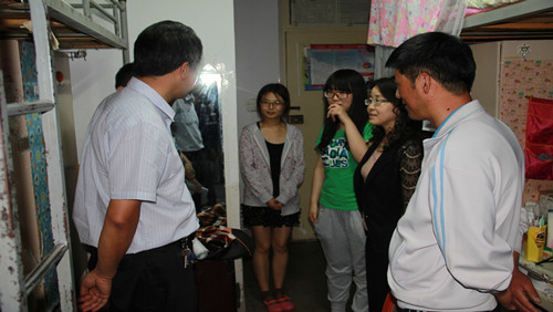 6月19日,学院党委书记张喜爱、副书记李仁、法律系主任王宏英以及辅导员赵小培、赵志桥一行5人前往兰天公寓看望慰问即将离校的2014届毕业生,并为广大毕业生送去了全院师生的真切关怀与衷心祝福。