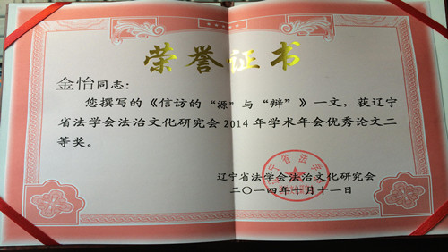 本次学术年会以“中国法文化的传承与创新”为主题,共收集学术论文45篇,论文涉及法律文化原理、民商法文化、刑法文化、司法文化等方向,展示了法治文化的优秀研究成果。经专家评审,评选出优秀论文一等奖9篇,二等奖17篇,三等奖11篇。新葡萄金怡老师撰写的论文《信访的“源”与“辩”》获得本次评阅二等奖。