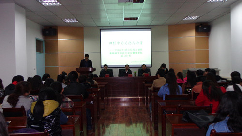 此次活动由新葡萄8883官网AMG硕士研究生赵志桥同学主持。在经验交流会上,首先由参与华中师范大学中国农村研究院2014年暑期 “万村调查”项目的三位获奖同学代表张璐、康玉佳和文轲发言,分享了农村调研的体会和感悟。随后,新葡萄8883官网AMG副教授熊征根据读博期间多年的藏区调研经历,强调了田野调查的必要性,认为选取合适的田野点至关重要,并且要做好前期的人脉准备和心理准备。牛绿花教授在点评了三位获奖同学代表的发言之后,着重介绍了田野调查的基本方法,并指出田野调查要跳出自我视角的束缚,以“他者”的眼光去观察“熟视无睹”的乡村环境,从而发现问题、解决问题。参会师生还共同观看了《能力优先,阶梯培养——中国农村研究院基地班人才创新培养模式纪实》(http://v.baidu.com/watch/336265393725248907.html?fr=&page=videoMultiNeed)视频资料,真切了解了华中师范大学中国农村研究院通过田野调查等实践环节来创新研究生培养模式的经验。最后,杜睿哲教授、王勇教授、牛绿花教授和熊征副教授向70位调研员颁发了由华中师范大学中国农村研究院签署的“优秀调研员”获奖荣誉证书。