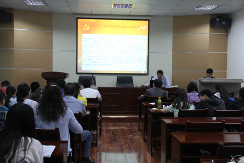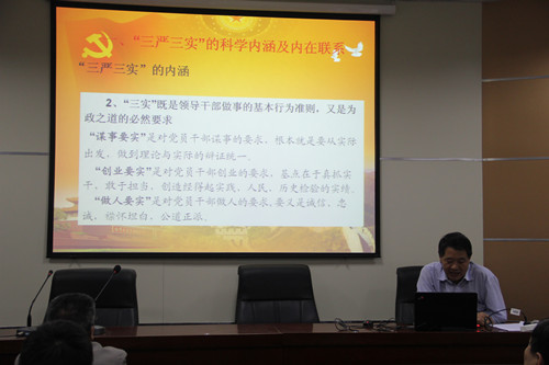 根据学校党委开展“三严三实”专题教育部署要求,5月29日下午,新葡萄8883官网AMG党委书记张喜爱为学院师生党员讲《以“三严三实”专题教育深入推进作风建设》为题的专题党课,学院领导班子成员、所属各支部书记、师生党员共60余人听取了党课。专题党课从“三严三实”的科学内涵及内在联系、充分认识“三严三实”要求的现实意义和践行“三严三实”的基本要求等三个方面进行了讲解,同时对新葡萄8883官网AMG开展“三严三实”专题教育进行了安排和布置。学院将按照制定的“三严三实”专题教育实施意见,有计划、按步骤,精心组织,扎实有效开展专题教育,力求在作风建设方面取得新成效,保障和促进学院改革发展和内涵式发展。