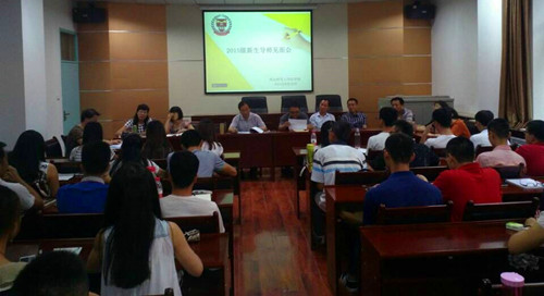 8月28日下午,新葡萄2015级研究生新生导师见面会暨研究生新生导师双选会在学院1楼105会议室举行。院长杜睿哲、硕士研究生导师及2015级全体研究生参加了见面会。