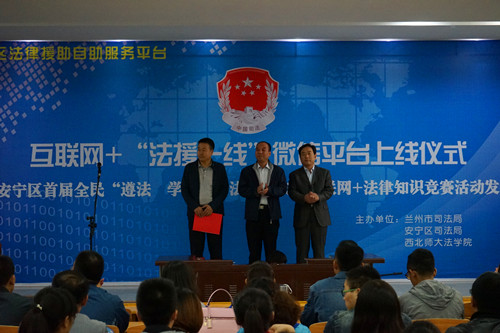9月10日,甘肃省首家法律援助平台“法援一线”上线仪式在新葡萄模拟法庭举行。兰州市司法局、安宁区区委、安宁区司法局等相关领导、新葡萄8883官网AMG师生共计200余人参加了此次活动。活动仪式上,兰州市司法局局长严军龙,安宁区委常委陈涛,杜睿哲院长为平台上线进行了开网。