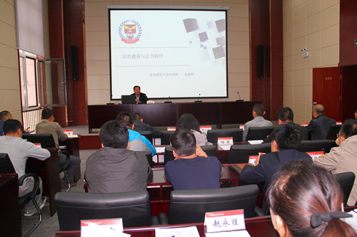 为加强校企合作,提升办学影响力,9月11日,新葡萄与华电福新能源股份有限公司甘肃分公司签订培训协议,每年举办一期培训班,实现企业领导干部法律知识培训常态化。依据培训协议,第一期培训由新葡萄杜睿哲,李玉璧,吴国喆,齐建辉、牛绿花,党崇武六位老师围绕法治思维与法治方式,物权法,企业知识产权战略与管理,公司法,劳动合同法,司法体制改革对企业发展的影响等紧密关系企业发展的法律法规进行了为期3天的专题讲座及研讨。