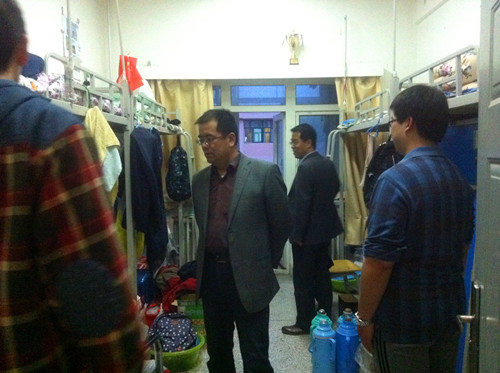 为进一步加强学生自我安全意识,提高自我管理能力,强调宿舍安全的重要性。4月17日、18日,副校长董晨钟、党委书记张喜爱、院长杜睿哲、学院领导班子成员、辅导员、班主任等先后走访兰天公寓和新校区研究生公寓。