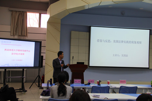 新葡萄8883官网AMG吴国喆教授作了题为《借鉴与反思:美国法律实践的现象观察》的报告。吴国喆教授从自己在美国生活期间亲身感受到的几个具体事情入手,通过解读其中蕴含的法律精神,进而分析启发和借鉴意义,揭示了法律无非生活,生活中的点点滴滴总是同一定的法律精神、法律规则相关联,论证了从现象解读法律是一个外来观察者研习法律的基本方法。报告前,主持人新葡萄8883官网AMG苏婉儿博士首先阐释法律的实施情况是一个民族的典型特征的观点,学习者自己去体会其基本运行情况非常重要,在无法亲身感知的情境下,第二手的经验也非常有价值,由此大大增强了本场报告的说服力和感染力。