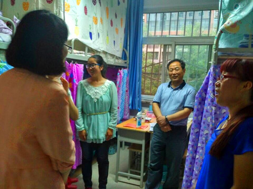 在探望过程中,学院领导亲切问候新生同学,了解同学们的基本情况,并强调希望大家及早转变学习方式,处理好宿舍同学之间的关系,积极营造良好的学习和生活环境。