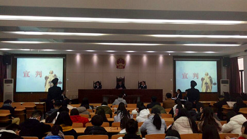 下午,在模拟法庭举行了模拟审判活动,新葡萄8883官网AMG师生120余人参加了审判活动。模拟审判由学生担任审判长、陪审员、公诉人、辩护人、被告人和法警等角色,庭审分为开庭、法庭调查、法庭辩论、被告人陈述、评议审判等阶段。在模拟现场,同学们展示了司法审判人员认真严谨的工作态度以及公平正义的法律操守,营造了法庭庄重严肃的氛围,让到场的人员都真正融入整个审判过程中。庭审结束后,田庆峰老师和法律硕士张顺平对此次审判作了总结点评。通过典型教育意义的模拟审判“马ΧΧ”案件,以案说法,总结教训,给学生们上了一堂鲜活的法制教育课。