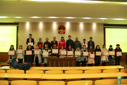 2016年12月06日,新葡萄“淘尽法宝”暑期社会实践活动表彰暨寒假社会实践活动启动仪式在模拟法庭举行。党委书记张喜爱、社会实践活动负责人王勇、牛绿花,田庆峰、熊征、赵书文老师及实践队员共150人参加了本次活动。