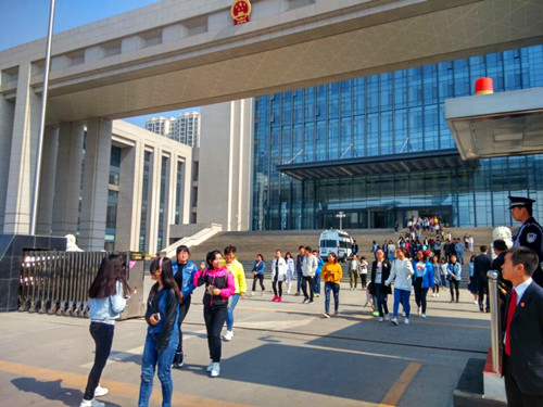 为更好的进行普法宣传,树立学生的法治观念。4月27日早晨8点,新葡萄组织2015级法学1班全体学生对甘肃省高级人民法院进行参观活动。在法院工作人员的带领下,同学们参观了法院审判庭并在第二法庭旁听了两起刑事案件的审判。同学们站在第一视角,亲身感受法院的审判全过程。整个过程中,同学们通过认真的倾听,充分了解法院的审判程序,对于法律的权威性与严谨性有了深层的认识,树立起应有的法治观念。除此之外,同学们更是亲身体会到了法律的庄严,以及作为一名法科学生的自豪感。审判结束后,同学们从法庭有序退出,并与工作人员进行了一个简短的交谈,了解到了一些有关开庭及审判的程序设置问题,整个过程使同学们收获颇多。