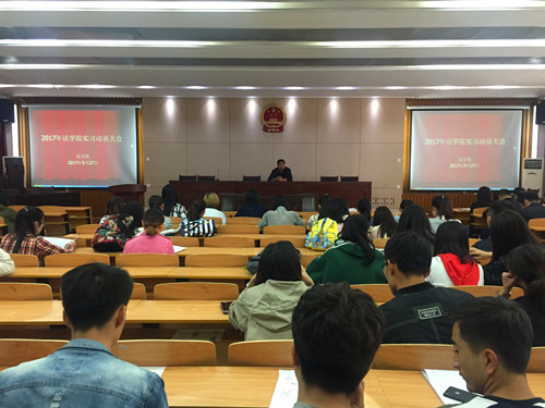 9月27日上午,学院在模拟法庭召开2014级法学专业学生实习动员大会,教学副院长党崇武、系主任何俊毅、班主任赵书文、王兰、实习指导教师张芸、张敏、李泉、教务秘书刘萌以及2014级全体学生参加会议。