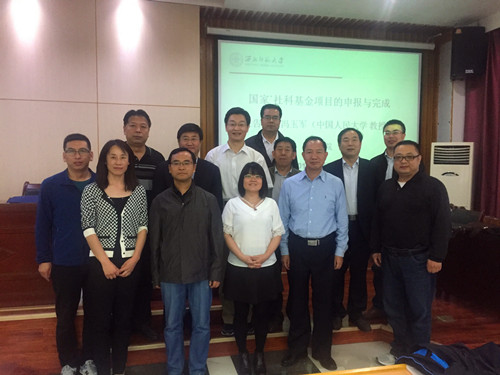 报告会初始,冯玉军教授谈到自己与师大的缘分。冯玉军教授将本次报告分为五大模块,首先从国家有要求、单位竞争大、自己需努力三个方面阐述了国家社科基金项目的科研要求和项目类型,当下被动式的科研到回归初心是从微观到中观再到宏观的透彻;随后冯教授就如何申报、如何选题等方面对项目申报的准备工作与在座的师生分享,其中不攀比、不计较的心态在申报项目的前期尤为重要;接着冯教授讲述了课题涉及和论证要求,其中讲到综述在课题申报过程中体现申报者学术水平的重要方面;填报细节和技术要点则是报告的第四部分,从错别字、格式等形式要求体现出一个学者的严谨;最后则强调了学术目标与工作路径,以自己主持的科研项目为例,与在场师生进行分享。