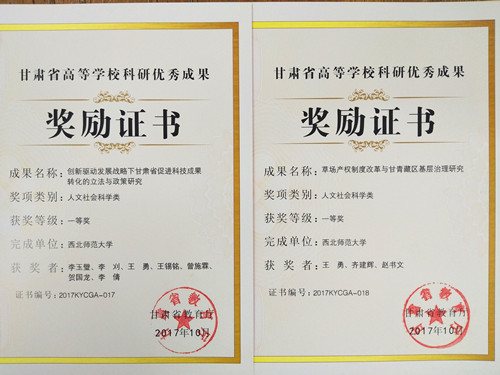 1 | 创新驱动发展战略下甘肃省促进科技成果转化的立法与政策研究 | 李玉璧 | 法学 | 新葡萄8883官网AMG | 一等奖 |