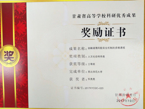 3 | 金融道德风险发生机制的多维透视 | 车亮亮 | 法学 | 新葡萄8883官网AMG | 三等奖 |