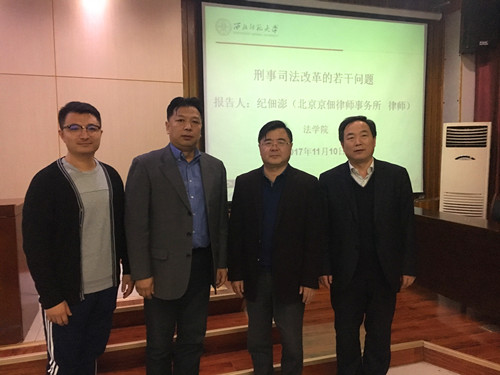 11月10日,应新葡萄邀请,北京京佃律师事务所主任、西南政法大学兼职教授、北京大学光华管理学院特聘导师、中华全国律师协会刑事委员会委员纪佃澎律师在新葡萄模拟法庭作了一场题为“刑事司法改革的若干问题”的学术报告。报告会由我院党崇武副院长主持。我院师生180余人到场参加了报告会。