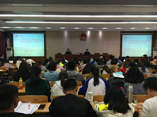 孙长永教授以宏大的视角、深厚的法律基础、多学科的理论方法向在座师生阐释了如何实现“以审判为中心”的刑事诉讼制度改革。孙长永教授严谨的治学态度、对人权司法保护的情怀、对公正审判理念的追求和对法治精神的信仰使在场聆听人员受益匪浅,报告主题引发了在座师生的热烈讨论,并随后就“监察委员会行使职权对审判的影响”等问题与在座的师生开展了良好的互动交流,并耐心解答了相关的问题。