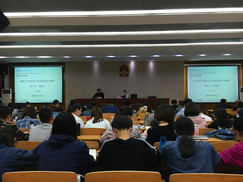 在报告会初始,姚建宗教授谈到自己早期的生活与求学之路的经历。姚建宗教授的讲座报告内容,主要围绕十九大中的社会主要矛盾问题,以法学的角度与老师和同学们分享了自己的心得体会。报告首先从我党的主要矛盾发展过程展开讨论,1956年,党的八大报告指出:“我们国内的主要矛盾,已经是人民对于建立先进的工业国的要求同落后的农业国的现实之间的矛盾,已经是人民对于经济文化迅速发展的需要同当前经济文化不能满足人民需要的状况之间的矛盾”。1981年,十一届六中全会通过的《历史决议》对我国社会主要矛盾做了规范的表述:“在社会主义改造基本完成以后,我国所要解决的主要矛盾,是人民日益增长的物质文化需要同落后的社会生产之间的矛盾。”