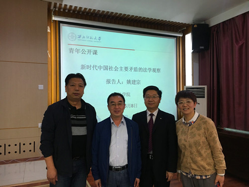 2017年,习近平同志在十九大报告中强调,中国特色社会主义进入新时代,我国社会主要矛盾已经转化为人民日益增长的美好生活需要和不平衡不充分的发展之间的矛盾。经历了几次重要变革后,姚建宗教授通过权威数据的展示,强有力的说明了十九大中社会主要矛盾转变的原因;其次讲了社会主要矛盾的内涵,“人民日益增长的美好生活需要”表现在更高程度的对物质生活的需求,以及民主、法治、公平、正义、安全、环境等方面的要求;再次对“不平衡不充分的发展状态”问题进行了说明,主要表现在社会生产力发展水平不平衡不充分(东部、中部、西部),以及制度的不平衡不充分的发展;最后,报告就如何解决主要矛盾提出了几点建议。