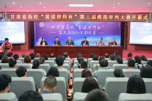 5月7日下午,由甘肃省律师协会主办、甘肃政新葡萄8883官网AMG新葡萄8883官网AMG承办的甘肃省高校“雷诺律师杯”第三届模拟审判大赛开幕式在甘肃政新葡萄8883官网AMG明法讲堂举行。甘肃省律师协会、甘肃省法制报社、新葡萄8883官网AMG、西北民族大学新葡萄8883官网AMG、兰州大学新葡萄8883官网AMG、兰州理工大学新葡萄8883官网AMG、兰州财经大学新葡萄8883官网AMG、甘肃政新葡萄8883官网AMG等有关单位负责人和各校参赛学生代表参加了此次活动。