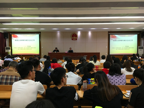 报告会一开始,李高协主任就我国立法工作向在场师生提出了两个问题:一是法是怎样立出来的?二是哪些主体有立法权限?在其后的讲座中,围绕我国目前的立法体制与地方立法工作,李高协主任从四个方面解答了开始提出的问题。首先,讲述了我国立法体制的历史演变,立法体制的结构层次,维护法制统一的措施等;其次,就我国立法程序,从法律案的提出、法律案的审议、法律案的表决,法律的公布几个方面讲述了我国人大立法的分工、权限等;再次,就我国法制统一前提下的地方立法的发展变化,地方立法工作机制的不断完善,立法草案渠道的不断扩展,立法质量及影响力不断提高等方面作出阐述。同时就目前地方立法的主要问题,包括立法起草工作的重视程度不高,地方立法能力不足,立法人才稀缺,缺乏特色,与上位法相抵触等方面进行了分析;最后,李高协主任在阐述新时代地方立法应当遵循的基本原则时提到:我们的科学立法、民主立法、依法立法的总体思路是不断提高立法能力,精立细修,严防抵触,突出特点,力求管用,以良法促发展,保障善治。