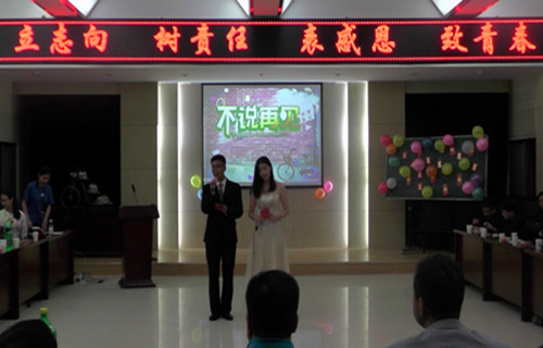 为欢送2018届毕业生,增进师生之间的感情,6月8日晚7点30分,新葡萄在10D四楼多功能厅举办了以“立志向,树责任,表感恩,致青春”为主题的2018届毕业生欢送会,学院党委书记张新民,副院长齐建辉,学院老师张久相、曹明、苏婉儿、学院团委书记赵小培及毕业生共80余人参加了此次活动。