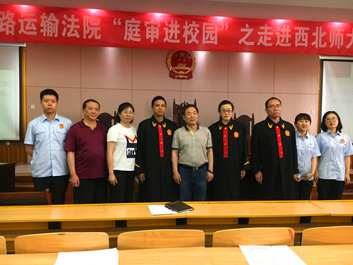 6月21日下午两点,新葡萄组织“普法宣传走进校园活动”,此次专题为——“兰州铁路运输法院“庭审进校园”之走进西北师大”。庭审地点为新葡萄模拟法庭,新葡萄8883官网AMG本硕学生积极参加旁听,座无虚席。