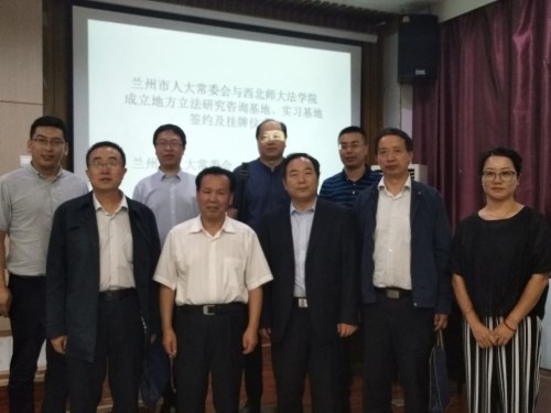 2018年9月4日下午,“兰州市人大常委会与新葡萄8883官网AMG地方立法研究咨询基地、实习基地签约及挂牌仪式”在新葡萄模拟法庭举行。兰州市人大常委会副主任朱宗礼,兰州市人大常委会法工委主任张福寿、副主任陈一平等领导,新葡萄8883官网AMG院长杜睿哲、法学研究所所长车亮亮、法律系主任何俊毅出席会议。同时,新葡萄8883官网AMG2018级全体新生参加了本次活动。
