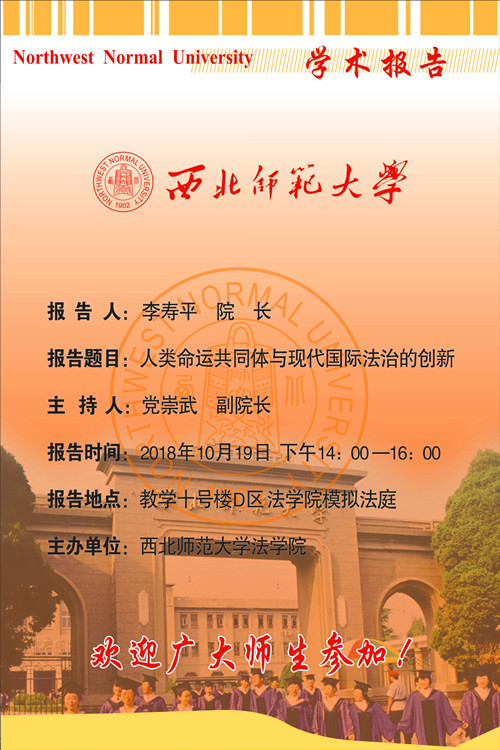 报告题目: 人类命运共同体与现代国际法治的创新