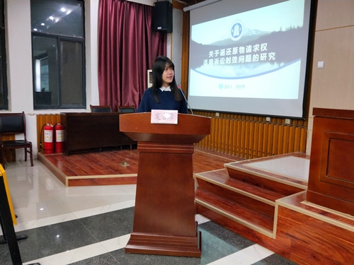 此次研究生学术论坛在两个分会场同时进行,共有12位研究生对自己的学术研究与在场的同学和老师进行了汇报和分享。第一会场在模拟法庭,由2018级法学硕士吉多伍呷主持,2018级六位硕士研究生就自己的学术研究和理论思考进行了汇报。其中宪法学与行政法学仇博冰的题目是《不同视角下的“修辞”——《制度修辞论》述评》,诉讼法学李丹阳的题目是《电子证据真实性的司法认定》,诉讼法学苏阳的题目是《体育竞赛中运动员的身份研究:以版权法为视角》,法律硕士(法学)陈薪宇的题目是《关于返还原物请求权适用诉讼时效问题的研究》,法律硕士(法学)张涵的题目是《“平等原则”在普惠金融中的体现--以农村信用社为例》,法律硕士(非法学)宁治皓的题目是《不动产登记行政诉讼中被告不适格的司法实践及规范建议——基于2018年70个不动产登记行政诉讼案件的实证分析》。学术论坛第二会场在10号楼D区105教室进行,由2018级法律硕士研究生李晋芳主持,2017级六位研究生进行学术汇报。其中宪法学与行政法学任春年的题目是《重大行政决策程序法治化研究》,法律硕士(法学)许根豪的题目是《从文字演变角度谈“法”中“去”字的含义》,法律硕士(非法学)陈雪的题目是《浅析《民法总则》第185条所保护之法益》,法律硕士(非法学)杜妍茜的题目是《1982年以来法律权利与义务关系研究综述》,法律硕士(非法学)李泽宇的题目是《我国涉外合同法律适用的司法实践及立法完善》,法律硕士(非法学)乔永鹏的题目是《智能汽车交通事故侵权责任法律分析》。在报告过程中,由在场老师就每位报告人的选题、论文的架构和观点结论进行全面点评,并与在场的同学和老师就法学理论研究和实践问题进行了广泛深入的交流,整个论坛充满了浓浓的学术气氛。