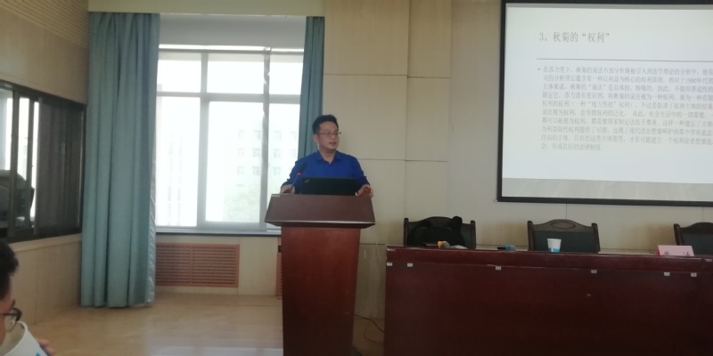 在讲座中,黄涛老师首先以1990年代的市场经济的大潮为背景,分析了中国法学界的权利观发生的变化,正因1990年代的权利观念呈现出较为丰富的内涵,所以为新时期的权利理论的发展敞开了空间。其次对反对法学大词、苏力的权利反思、秋菊的“权利”和权利的经济学四个方面进行全面系统的阐释,深入的解读了苏力的本土资源论的权利观。然后以《送法下乡》为主讲述了权利的怀疑论,最后详细的讲述了复仇制度与权利救济。与此同时,他们倡导的良知和德性,又超出了个体层面,这是一种以共同生活为本质的良知,也是一种参与共同体的德性。这也就为接下来有关权利的思考开启了一个更加开放的空间,权利的共同体应该是一个道德的共同体,而不是单纯利益合作基础上的共同体。