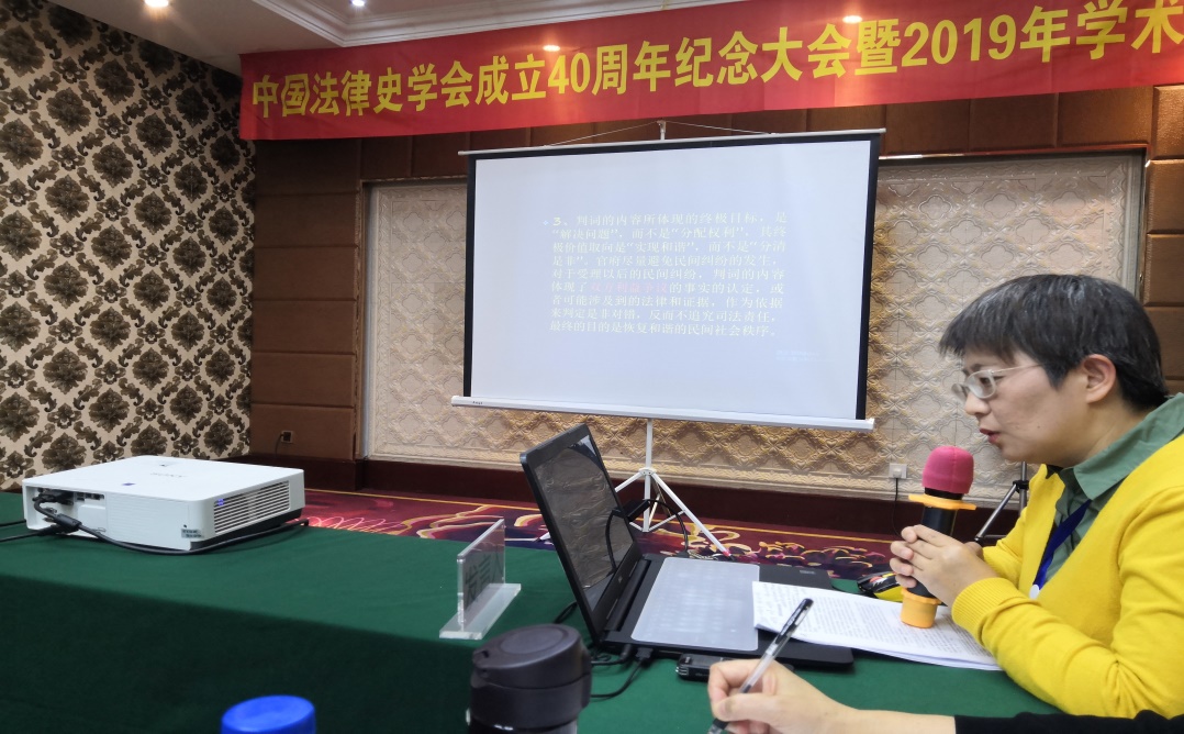 本次会议主题是中国法律史成立40周年纪念大会,会议设大会主题报告及五个分会场的研讨。新葡萄金怡讲师在第三分会场第一单元做了《紫阳司法档案判词研究》的发言,对于紫阳司法档案的最新研究成果提出了自己的观点。