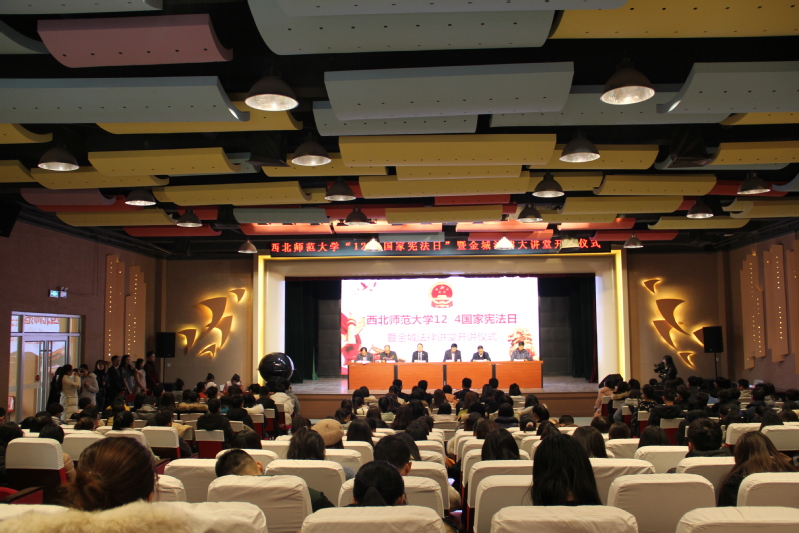 2019年12月4日是我国第六个“国家宪法日”。为认真贯彻落实中央全面依法治国精神,进一步凝聚全校师生尊崇宪法、学习宪法、遵守宪法、维护宪法、运用宪法的力量和共识,学校党委宣传部与新葡萄8883官网AMG于12月4日在学生发展中心二楼多功能厅举行了新葡萄8883官网AMG国家宪法日暨金城法律大讲堂启动仪式,李朝东副校长、甘肃省高级人民法院政策研究室主任曹焱、甘肃金城律师事务所主任王祖国及新葡萄8883官网AMG师生200余人出席并参加了启动仪式。