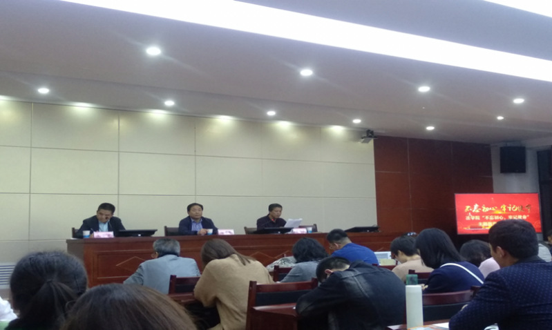 新葡萄8883官网AMG党委于2019年9月17日晚在模拟法庭召开学院“不忘初心 牢记使命”主题教育活动动员部署大会。大会由党委副书记王金元主持,新葡萄8883官网AMG党委书记张新民、党委委员杜睿哲院长、党委副书记王金元及新葡萄8883官网AMG本科、研究生、教工各党支部全体党员130余人共同参加。