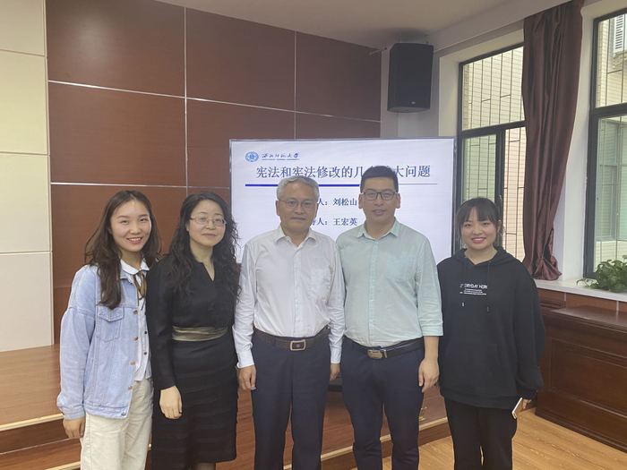 2020年9月18日下午,应我校新葡萄8883官网AMG邀请,中国法学会立法学研究会副会长、华东政法大学博士生导师刘松山教授在教学十号楼D区模拟法庭为新葡萄师生作了一场题为《宪法和宪法修改的几个重大问题》的学术报告。该报告会由新葡萄王宏英老师主持,新葡萄近200名学生聆听了此次学术报告。