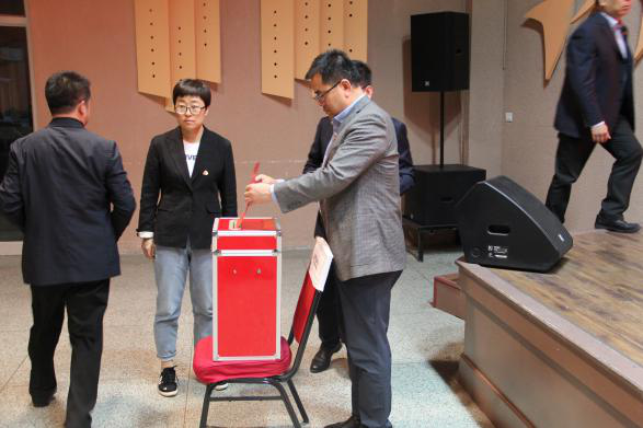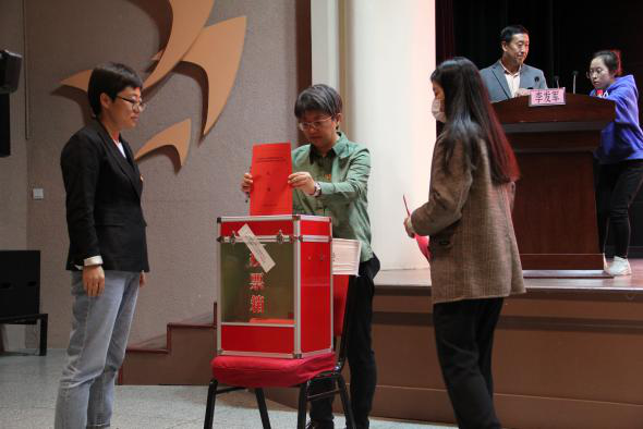 最后根据《选举办法》规定和计票结果,牛绿花、王金元、杜睿哲、李发军、姜亚贵(按姓氏笔画为序)5名同志当选为新葡萄8883官网AMG党委出席中国共产党新葡萄8883官网AMG第八次代表大会的代表。选举结束后,全体起立,齐唱国际歌,大会结束。